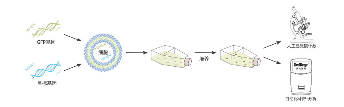 進(jìn)行轉(zhuǎn)染實(shí)驗(yàn)時(shí),在連接GFP基因與目標(biāo)基因后,通過(guò)將這些基因?qū)爰?xì)胞,研究人員可以利用GFP的熒光特性來(lái)跟蹤目標(biāo)基因在細(xì)胞內(nèi)的表達(dá)情況。這可以通過(guò)熒光顯微鏡觀察和計(jì)數(shù)綠色熒光的GFP細(xì)胞數(shù)量來(lái)實(shí)現(xiàn)。