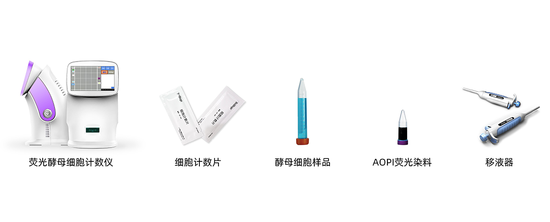 前期準(zhǔn)備:熒光酵母細(xì)胞計(jì)數(shù)儀-細(xì)胞計(jì)數(shù)片-酵母細(xì)胞樣品-AOPI熒光染料-移液器