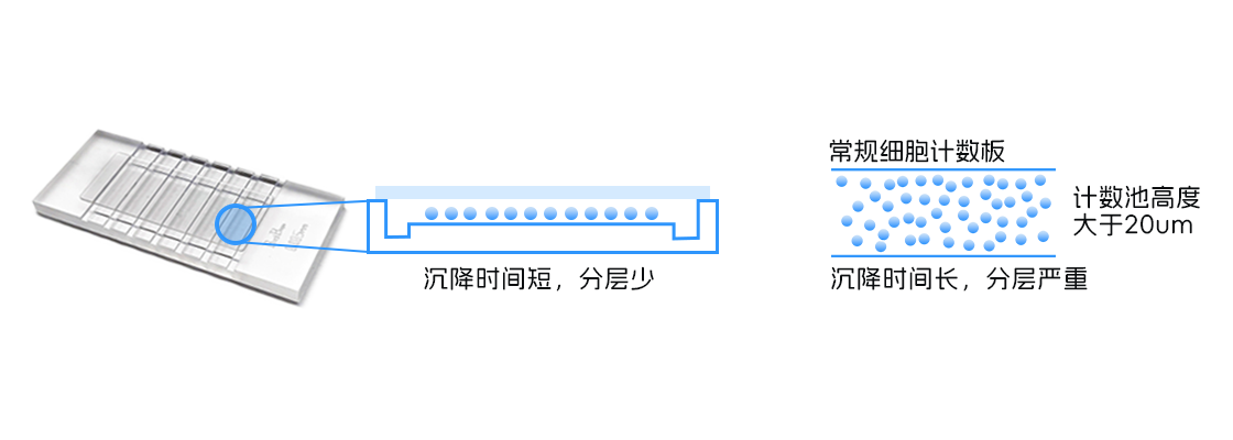 儀器適配專用計數板-高通量、計數池高度更低,可加速細菌等小顆粒的沉降,有效解決菌液分層問題。
